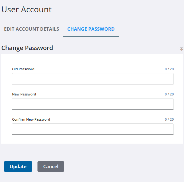 - Click the Change Password tab to create a new password for your account.