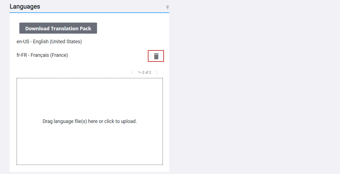 - To remove a language file, click Remove to the right of the file.