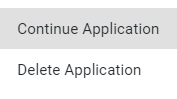 - Click the choose action drop-down list to either Continue Application or Delete Application.