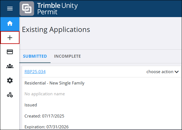 From the Application Overview panel, users can navigate to the home page by clicking the Trimble Unity Permit logo or Home Page in the menu. To access the case from the home page, see Review Submitted Applications for more information.