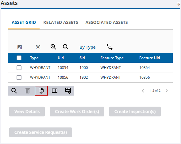 Export assets selected from the map and displayed on the Assets panel to a .csv file.