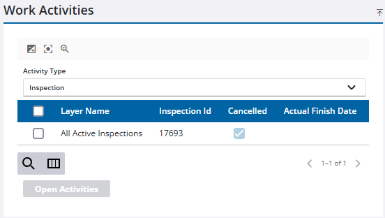 NOTE: When a selection from the map is removed or a new selection on the map is made, the Work Activities panel will automatically populate according to any changes.