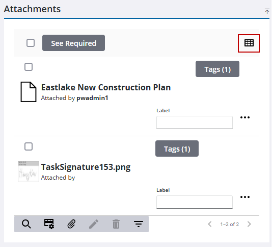 - Click View as grid to view the attachments as tiles.