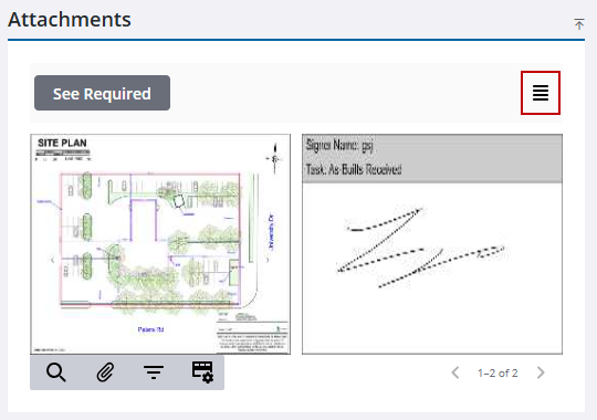 You can change how attachments appear in the Attachments panel from the Attachments panel on the work activity or the Attachments page on a work order or case.