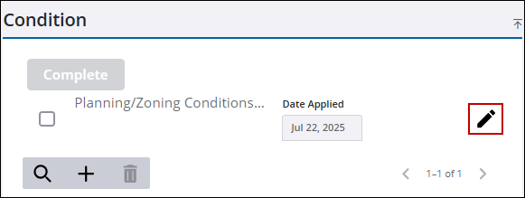 NOTE: Once a condition has been completed, the condition cannot be edited.