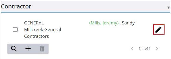 - Click the edit icon to the right of the contractor to open the Edit Contractor panel.