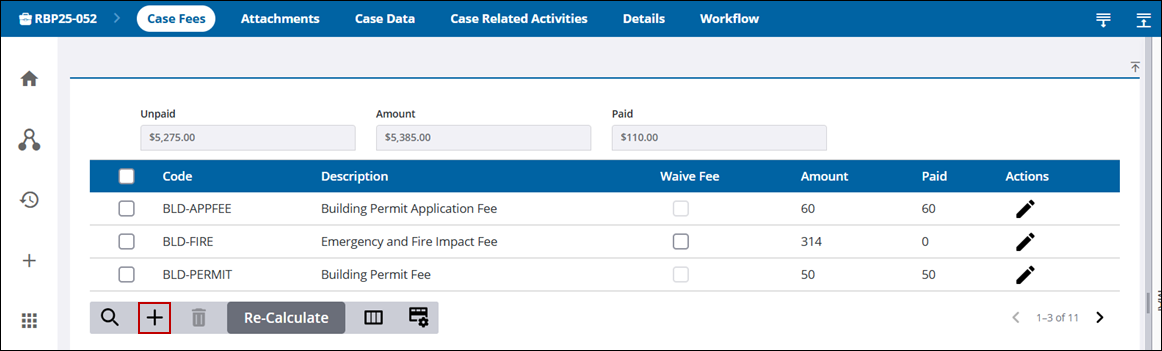 - From the activity toolbar, click Case Fees to open the Case Fees page.