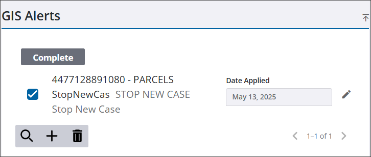 When an alert is no longer needed or has been resolved, you can mark it as complete. Only active alerts are displayed in the GIS Alerts panel, but completed alerts are maintained in the database.