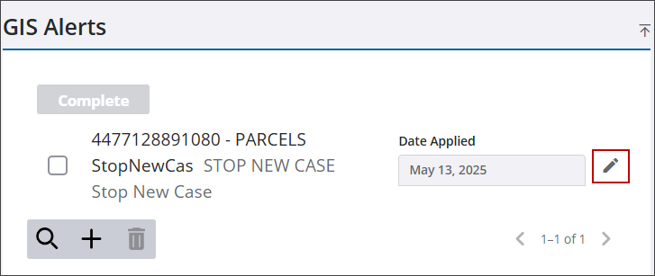 - Click the edit icon to the right of the alert to open the Edit GIS Alert panel.