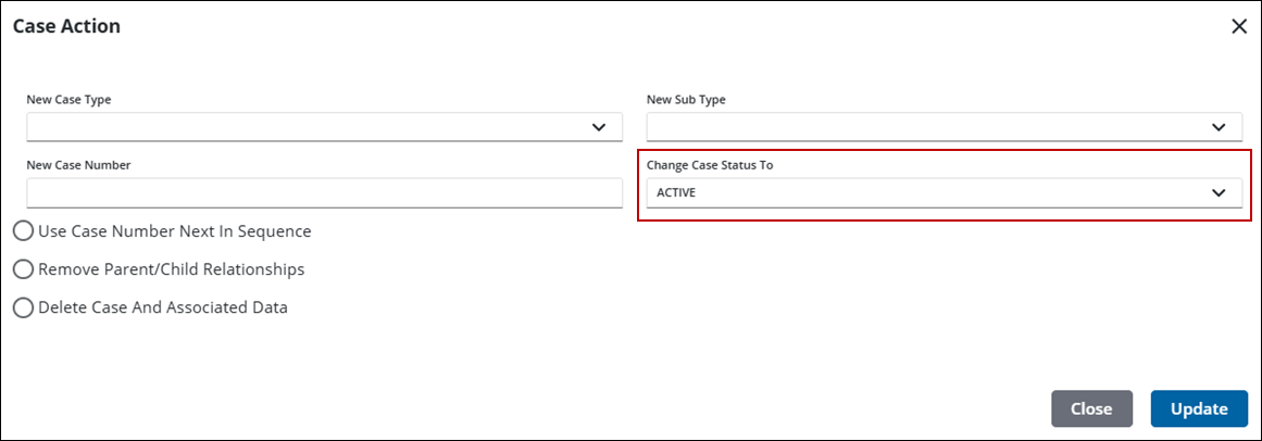 You can move a case forward by changing the status of the case from the Main panel on the case summary page or using the Case Utility tool.