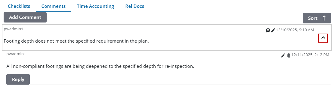 Comments display as expandable threaded conversations, showing the latest comment and date at the top, and allowing users to reply to existing threads or start new ones. You can edit, remove, format, reply to, and add user mentions to existing comments or add new comments on individual or multiple tasks from the Workflow panel or page. Task Manager allows you to configure comments for individual tasks.