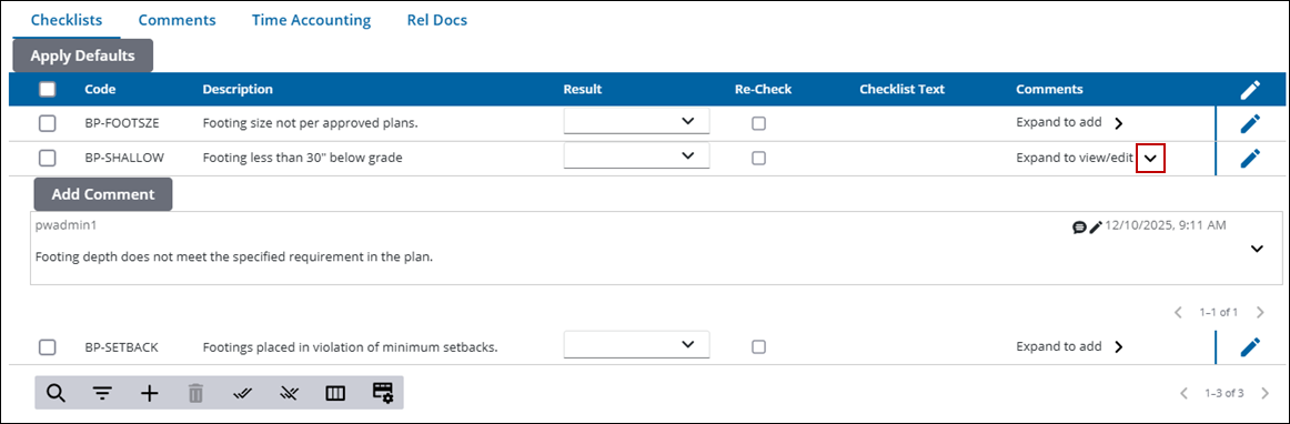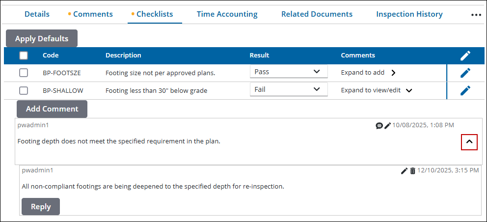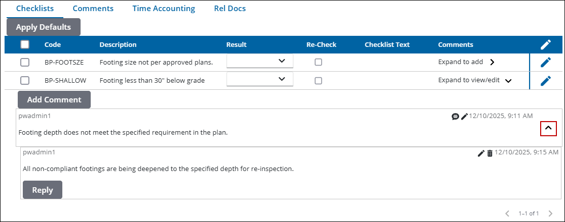 - Click the down arrow in the Comments column to edit, remove, reply to, and add user mentions to existing comments or click Add Comment to add a new comment.