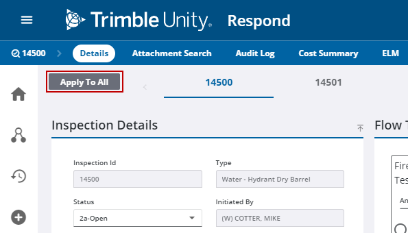 The Inspection page opens with the ability to now apply changes to all selected inspection at once.