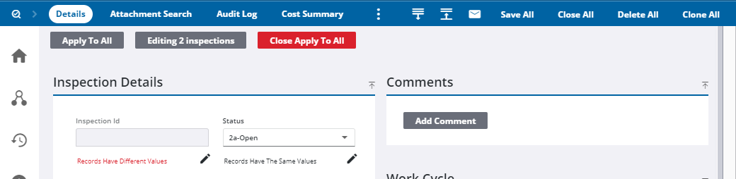 - Click Close Apply to All to stop editing multiple inspections at once.
