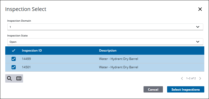 - Select a state of Open, Canceled, or Closed from the Inspection State drop-down list to filter the inspections.
