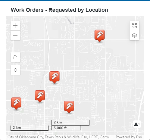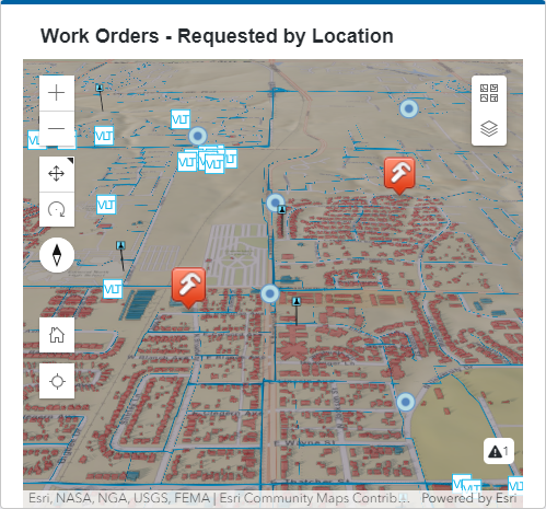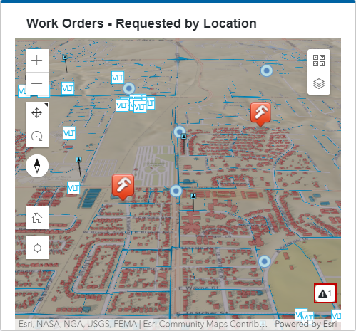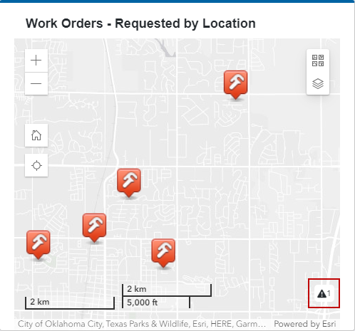 When all the work activities don't appear on the map, a triangle icon appears in the lower-right corner of the map.