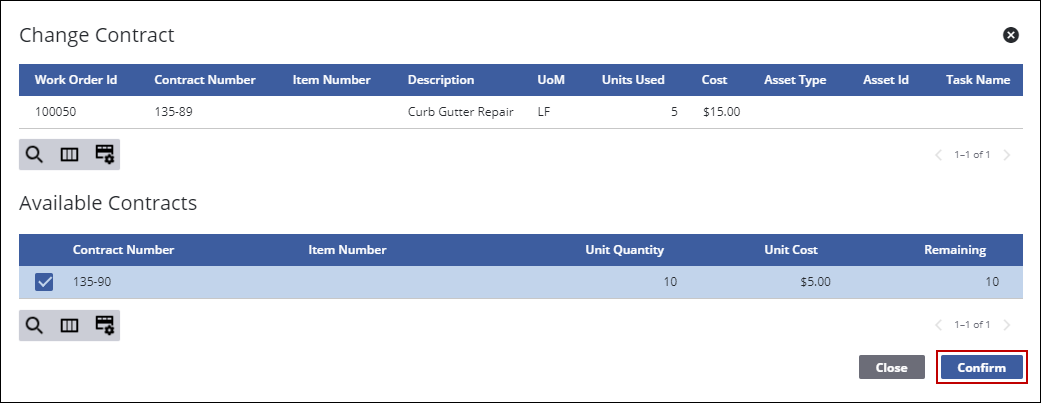 - On the Change Contract panel, select the contract from the Available Contracts section.