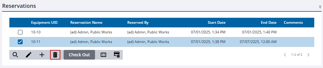 - Open the Equipment Checkout page. See Open Equipment Check Out for more information.
