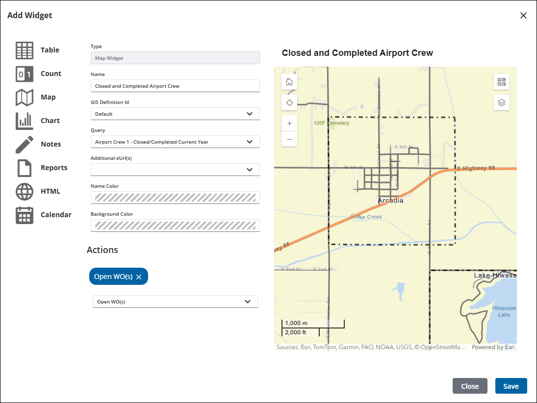 NOTE: A preview appears to the right on the Add Widget panel that dynamically changes as you define fields for the widget.