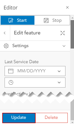 TIP: Make sure that the layer you're editing is visible in the Legend so you can view the assets on the map. See Make a Layer Visible for more information.