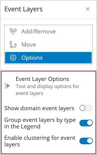 - Select Show domain event layers to view all event layers made available in the domain by an administrator.