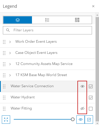 - Click Visibility next to any layer to make it visible or not visible. If Visibility is crossed out, that layer is not visible.