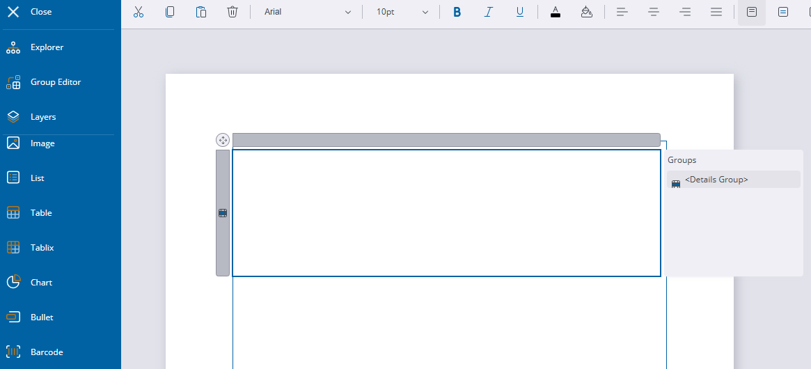 - Drag Table in the report from the AR Web Designer toolbar and remove all the tables and columns so it leaves one cell.