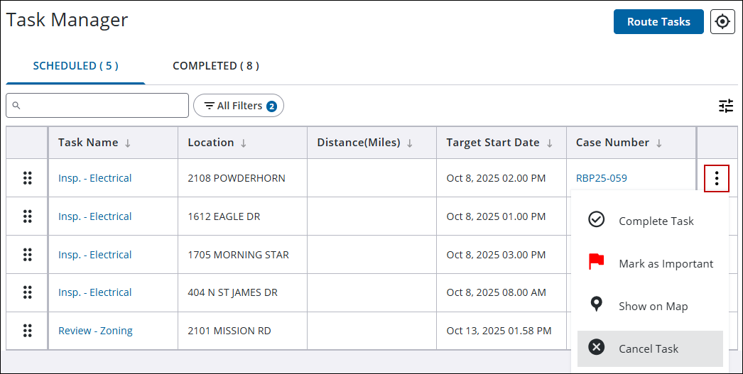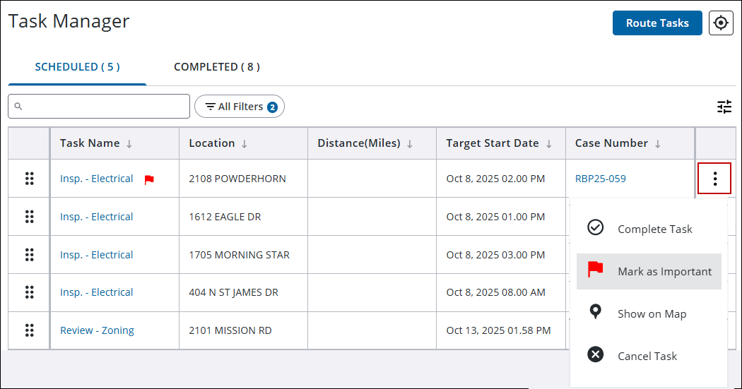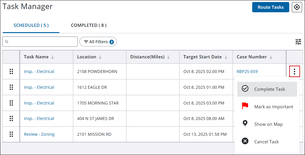 • Checklist items must be completed in order to complete a task. See Complete Checklists for more information.