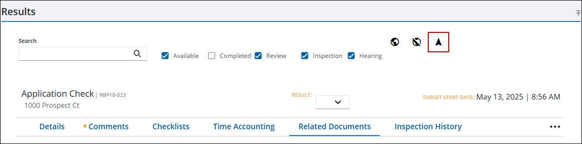 NOTE: If none of the tasks in the list have a valid X and Y coordinate, the navigation arrow does not appear.