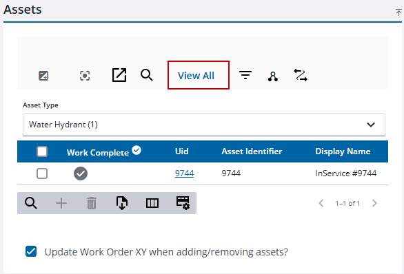 - Click View All to view all the assets attached to the work order. Click By Type to view a specific type of asset, such as a water main.