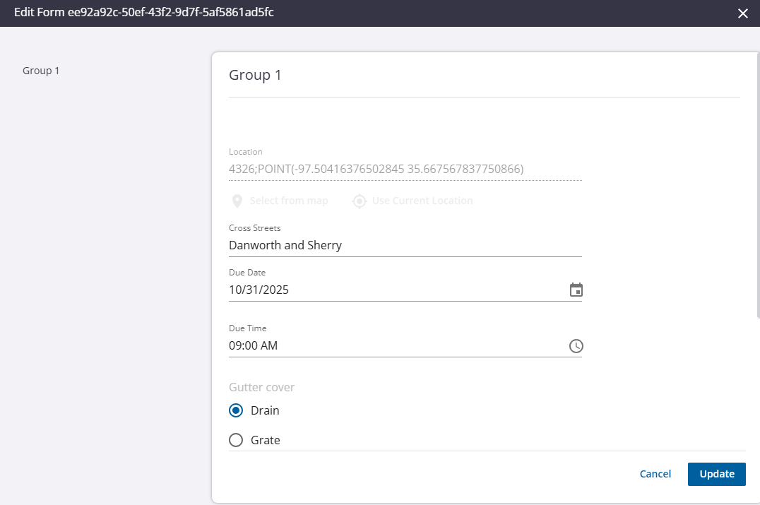 - Click Update on the Edit Form panel.