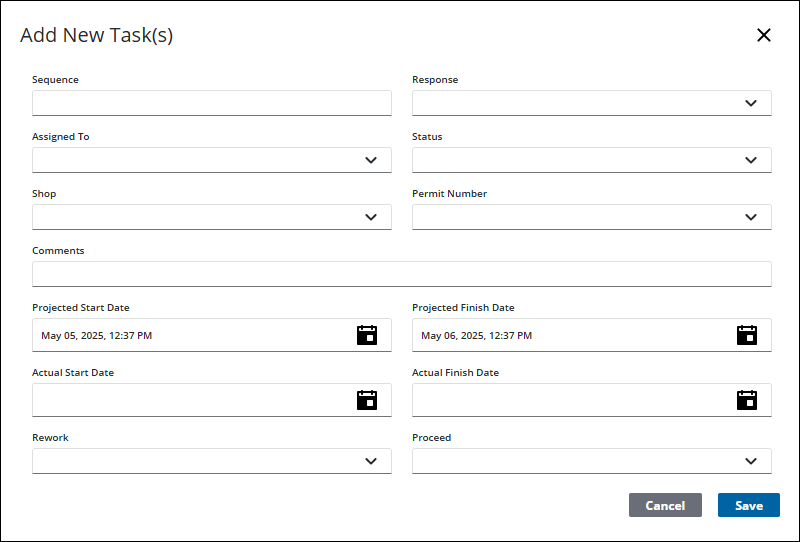 NOTE: Fields on this section may vary depending on the task chosen. See Work Order Fields for an explanation of fields.