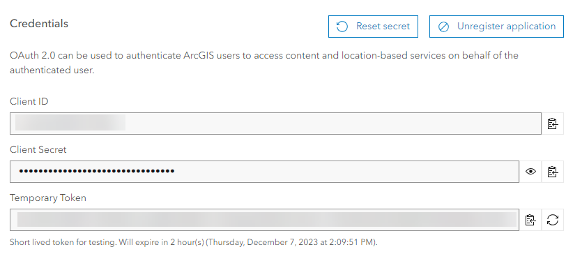 Under Credentials, the Client ID is shown and you can click Show/Hide to view the Client Secret. You will need these values for the OAuth 2 Clients page in Admin.