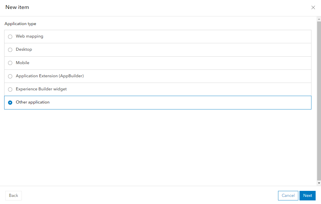 For more information on creating an application in ArcGIS Online or Portal for ArcGIS, see Esri's documentation: ArcGIS Online Help or Portal for ArcGIS Help.