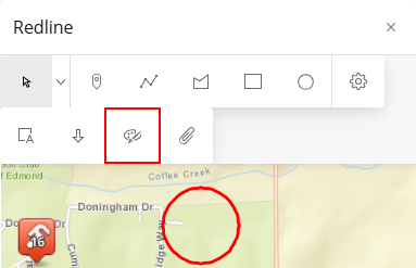 TIP: Click the map and a pre-defined circle is automatically added. See Modify a Redline for more information.